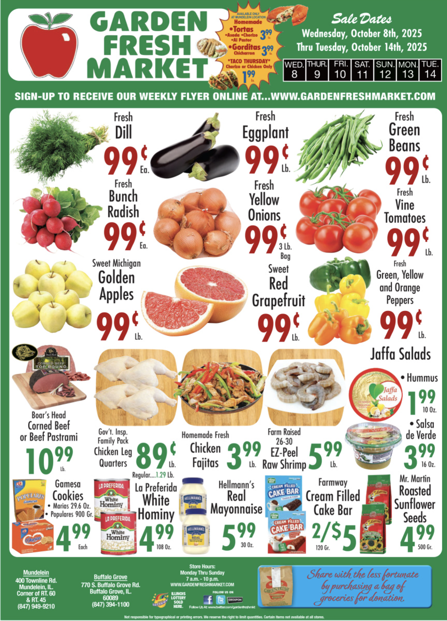 Garden Fresh Market has the “Worlds Best Produce Delivered Fresh to Our Stores 7 Days a Week!” The delis are stocked with premium brand name meats & cheeses with homemade seasonal salads and main courses. Our meat department is filled with choice meat cuts at the most competitive pricing. We carry your favorite brand name and specialize in a wide variety of diverse ethnic foods.